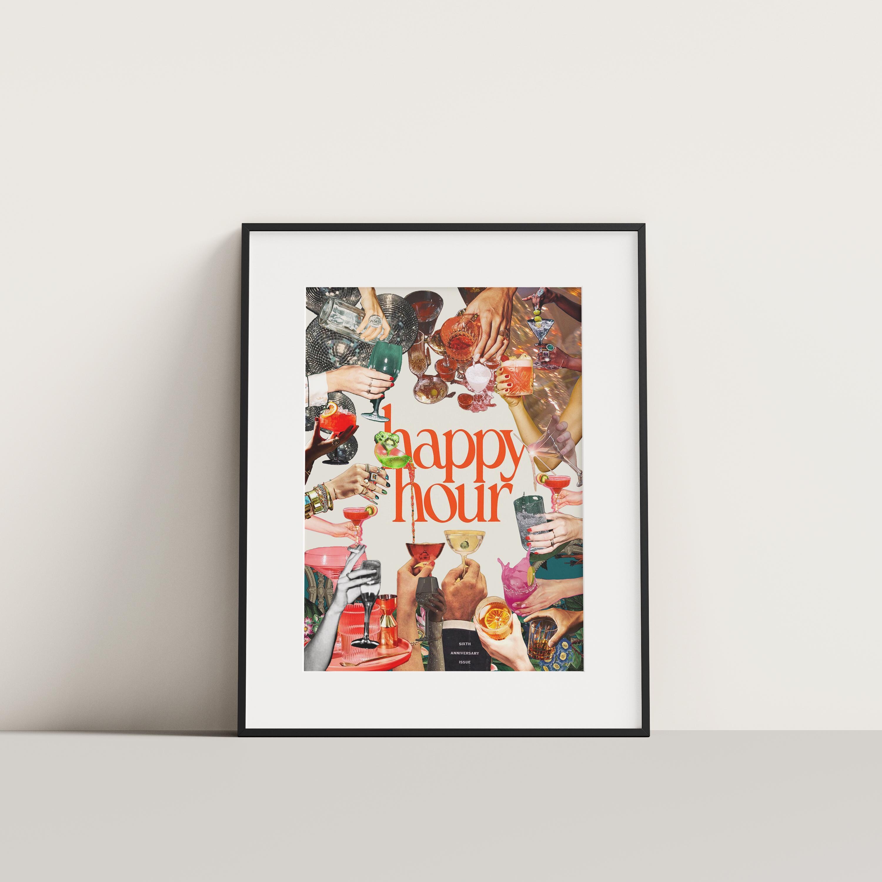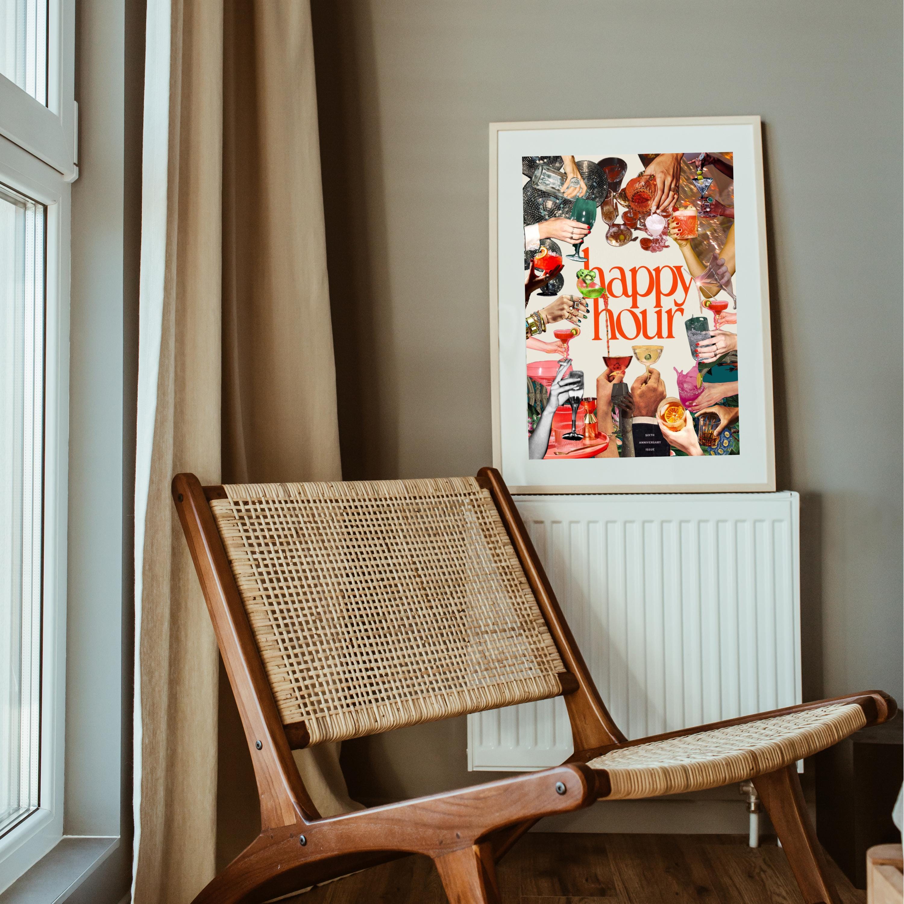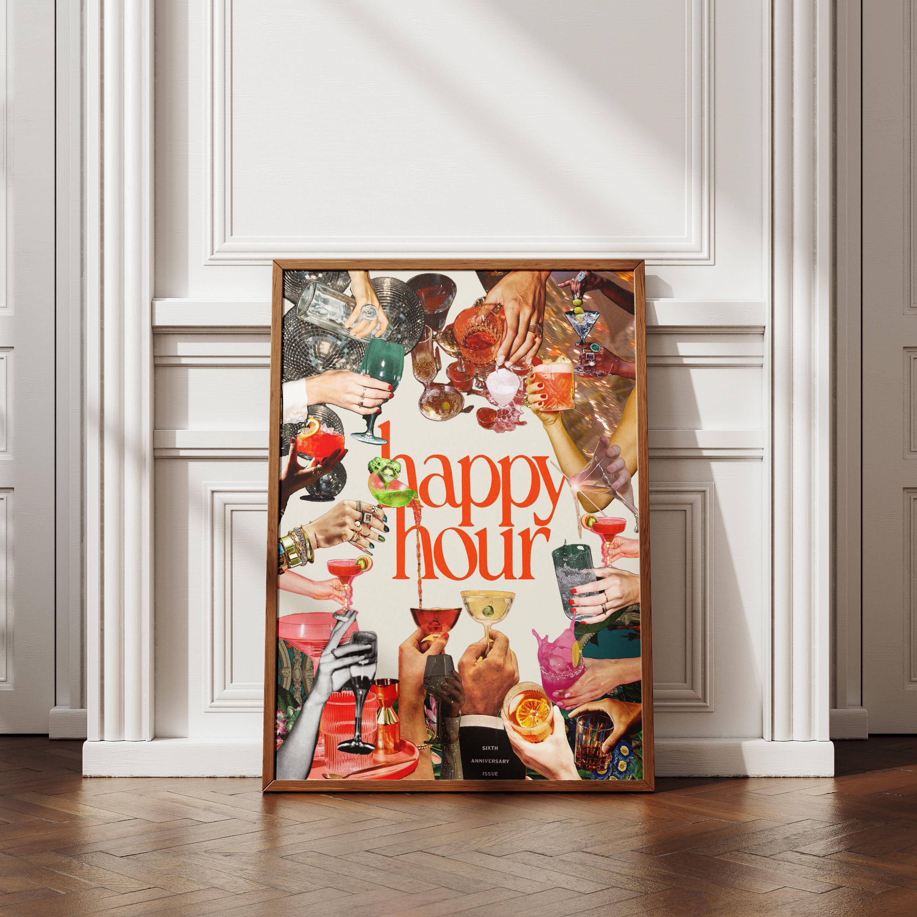 Enhance your home bar with this charming Retro Cocktail Print! Perfect for adding a touch of vintage flair to your space, this Happy Hour Bar Cart Art digital download is a must-have for cocktail enthusiasts and retro decor lovers. Instantly upgrade your home with this fun and colorful design. Cheers to happy hours at home!