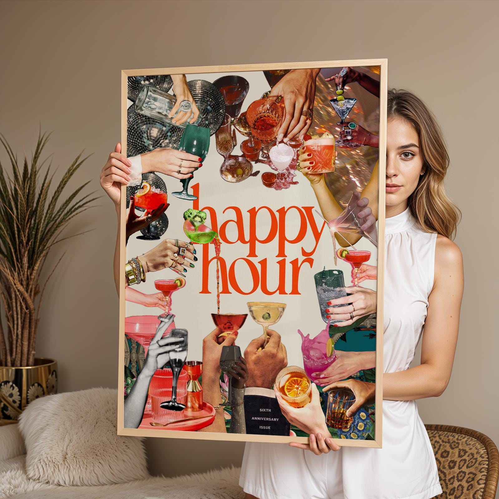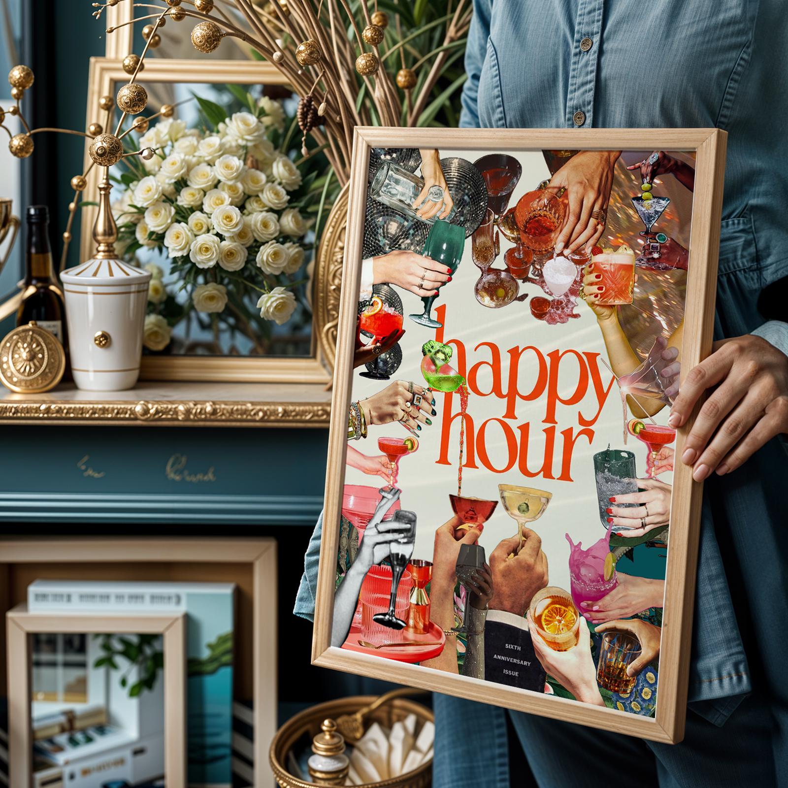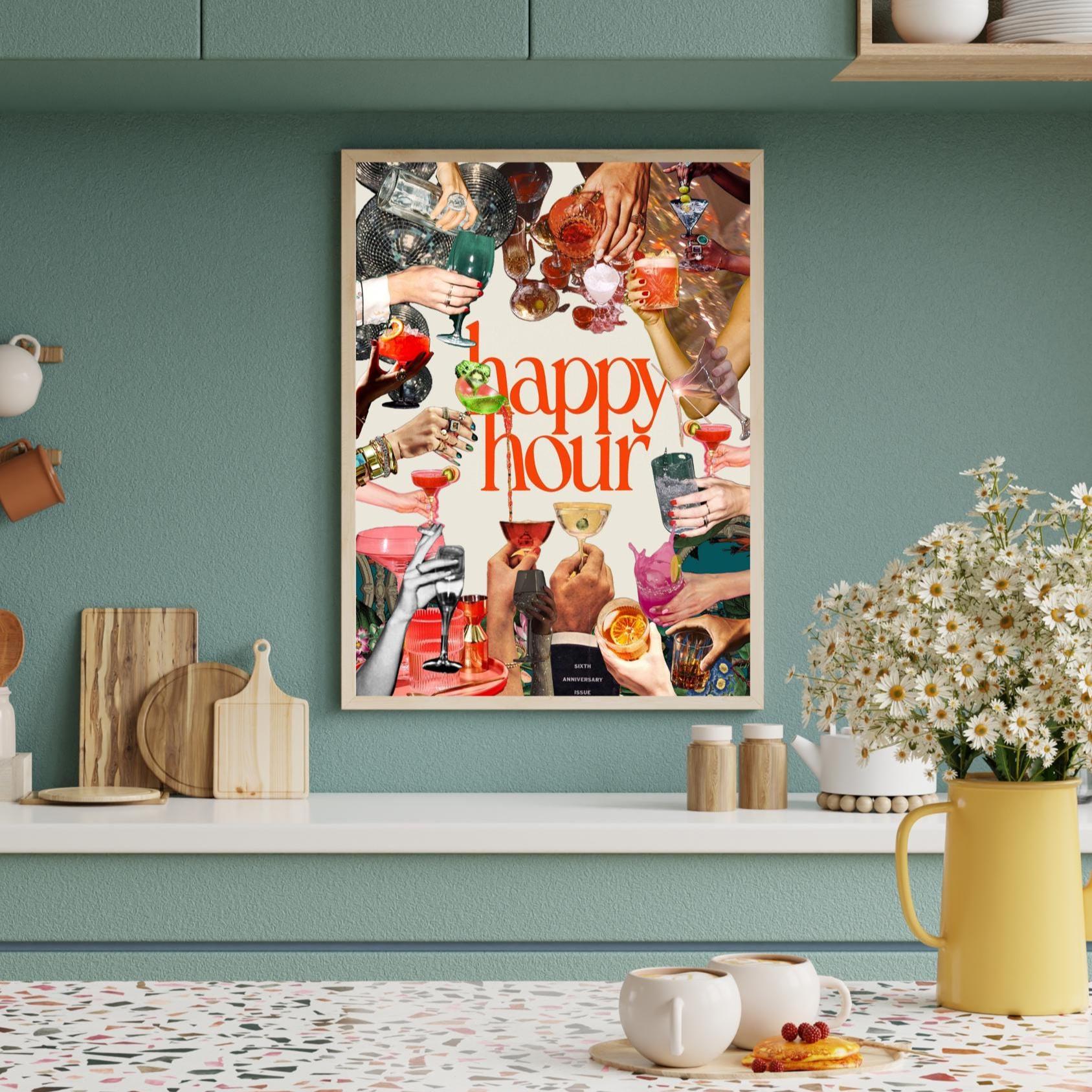 Enhance your home bar with this charming Retro Cocktail Print! Perfect for adding a touch of vintage flair to your space, this Happy Hour Bar Cart Art digital download is a must-have for cocktail enthusiasts and retro decor lovers. Instantly upgrade your home with this fun and colorful design. Cheers to happy hours at home!