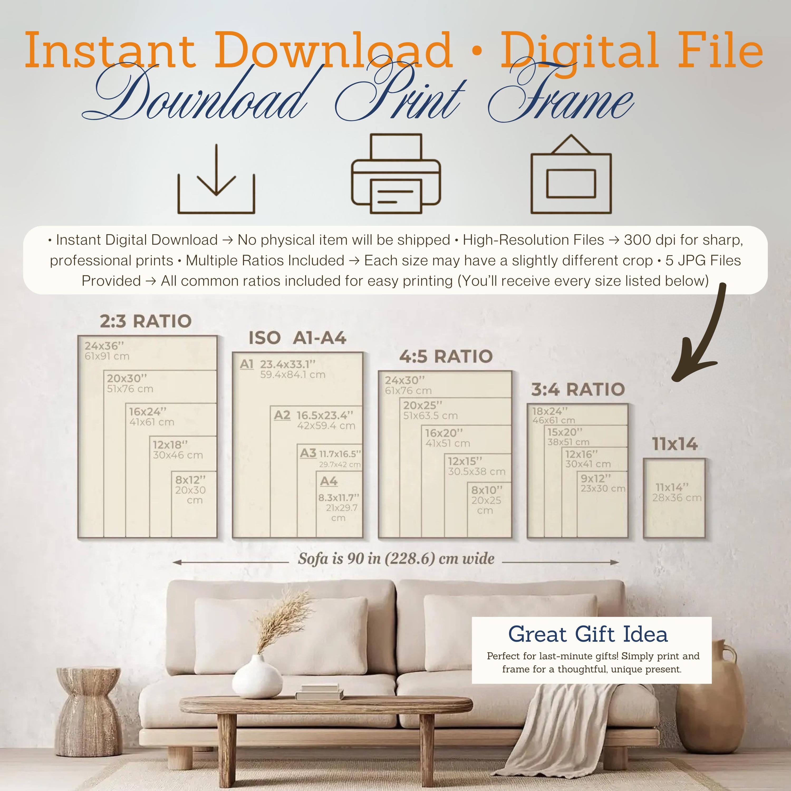 You will receive 5 high-resolution JPG files at 300 DPI. Each file comes in different aspect ratios, making it easy to print in multiple standard sizes: