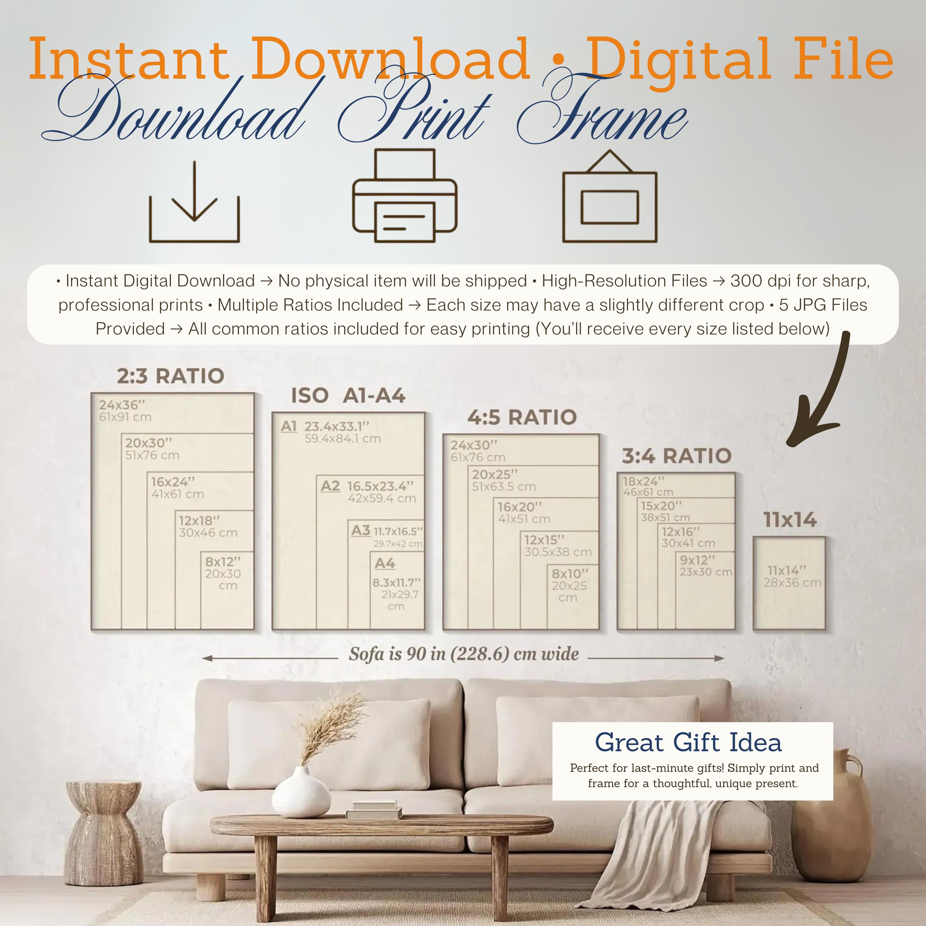 You will receive 5 high-resolution JPG files at 300 DPI. Each file comes in different aspect ratios, making it easy to print in multiple standard sizes: