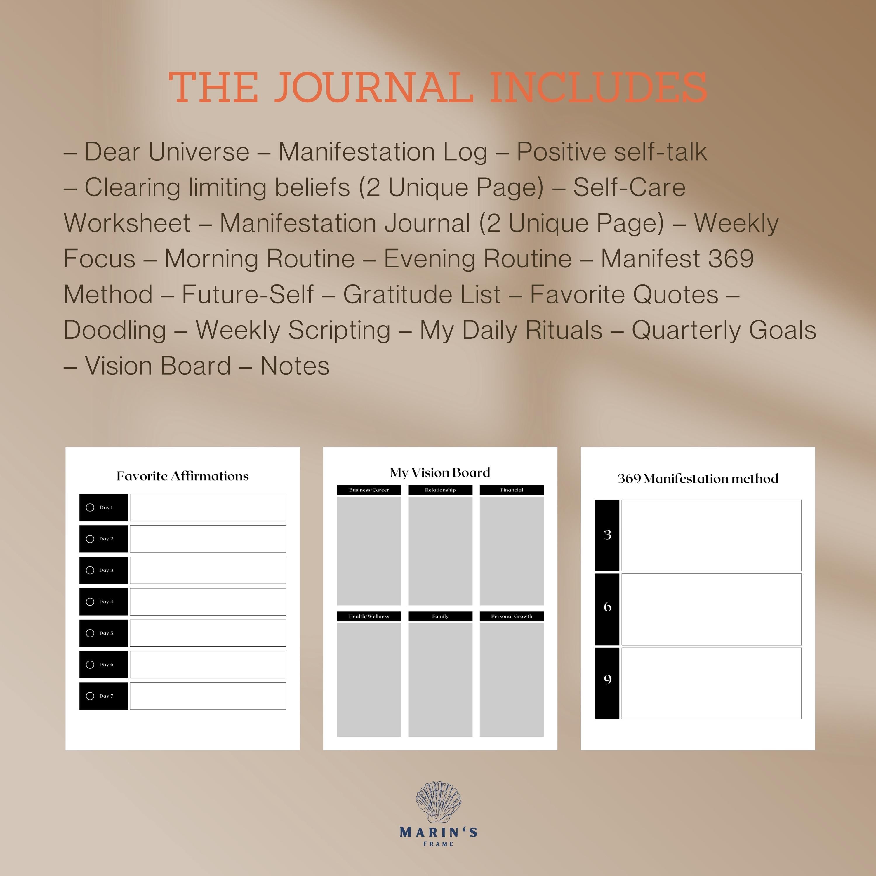 Do you struggle to attract your dream life? Would you like to discover the tools that can help you manifest any desire — whether it’s your dream home, financial freedom, or fulfilling relationships? This Manifestation Journal is a powerful tool designed to turn your dreams into reality. Through guided prompts and the Law of Attraction techniques, you’ll learn how to bring more abundance, clarity, and positivity into your life. Explore your deepest desires, set meaningful goals, and visualize your dreams with crystal clarity. This journal serves as a sacred space to manifest your intentions, amplify your motivation, and align yourself with the universe’s abundant energy. Beautifully designed and deeply inspiring, it helps you get clear on what you truly want — so you can create it. Your dream life is within reach.