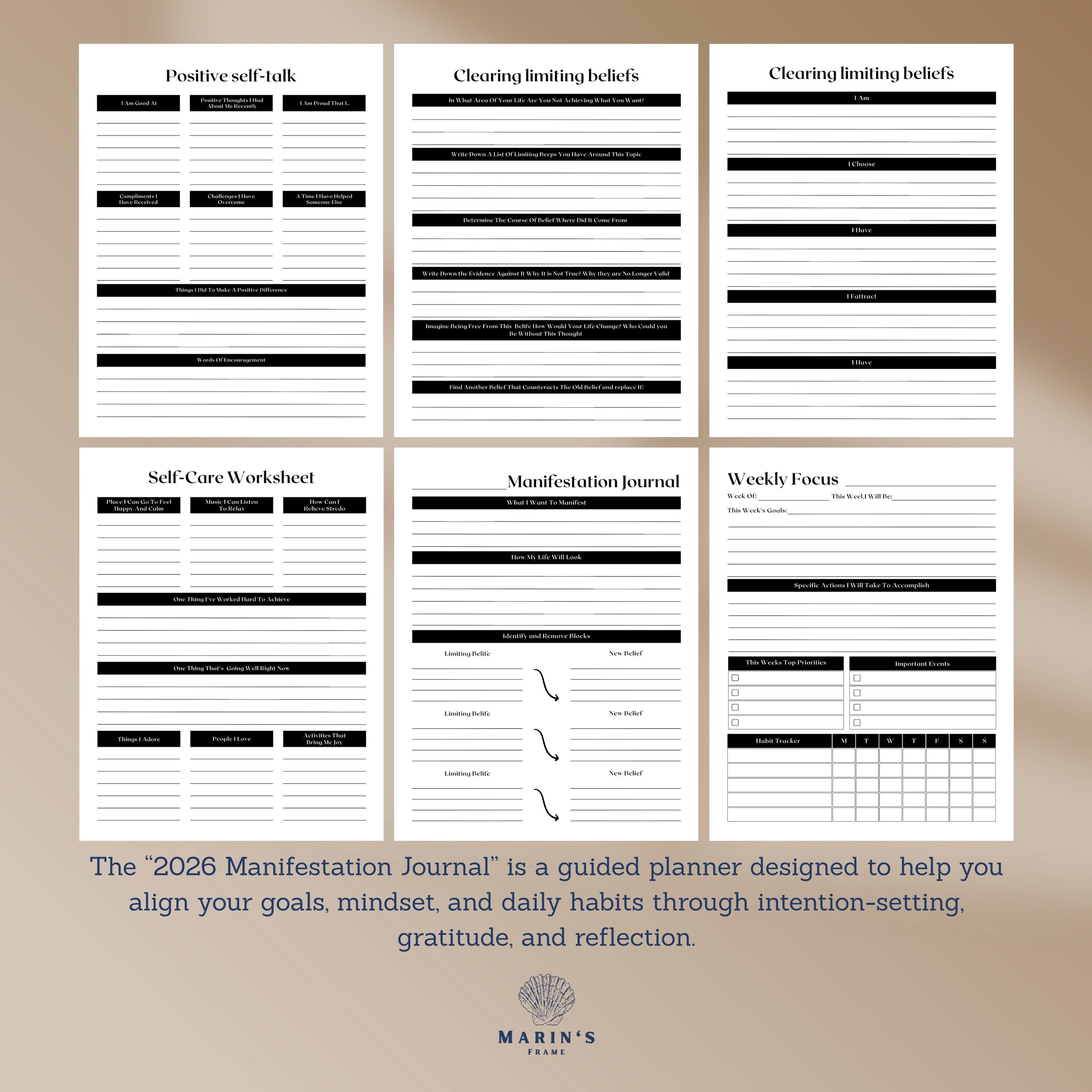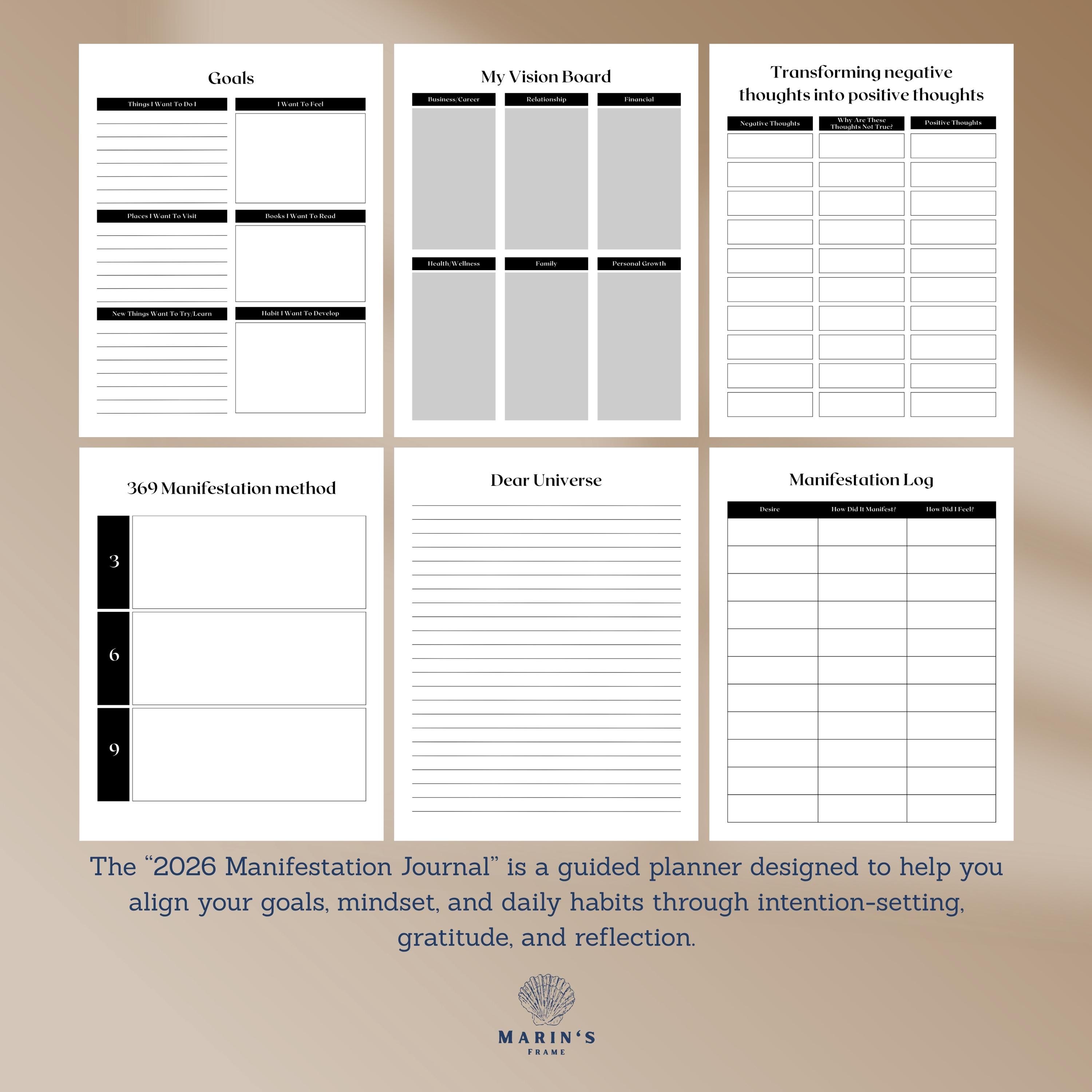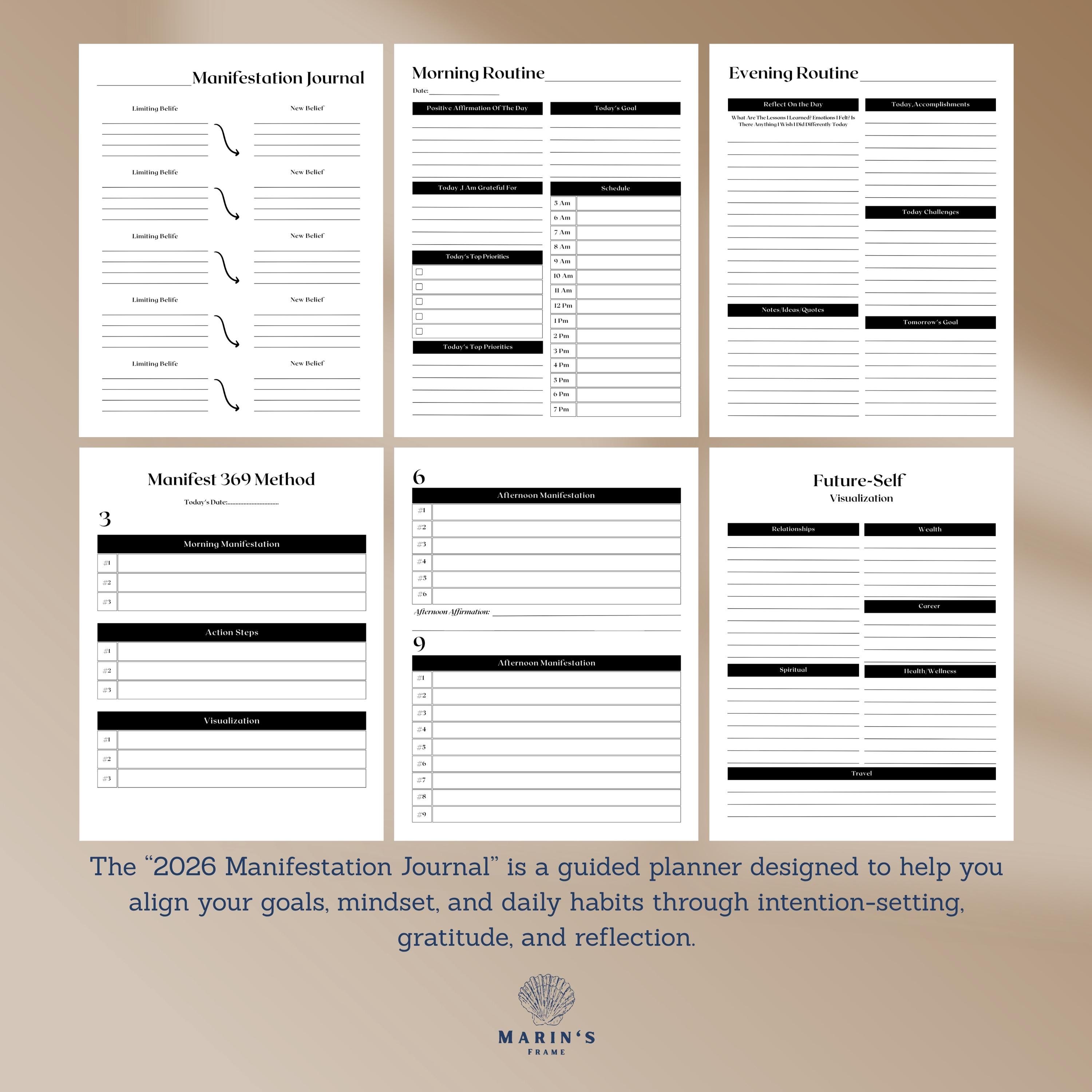 Use this Manifestation Journal to start manifesting the life you’ve always wanted! This guided planner helps you align your goals, mindset, and daily habits through intention-setting, gratitude, and reflection. Discover practical Law of Attraction tools that turn dreams into action — one page at a time. Perfect for anyone seeking to attract abundance, success, happiness, and purpose in 2026 and beyond.