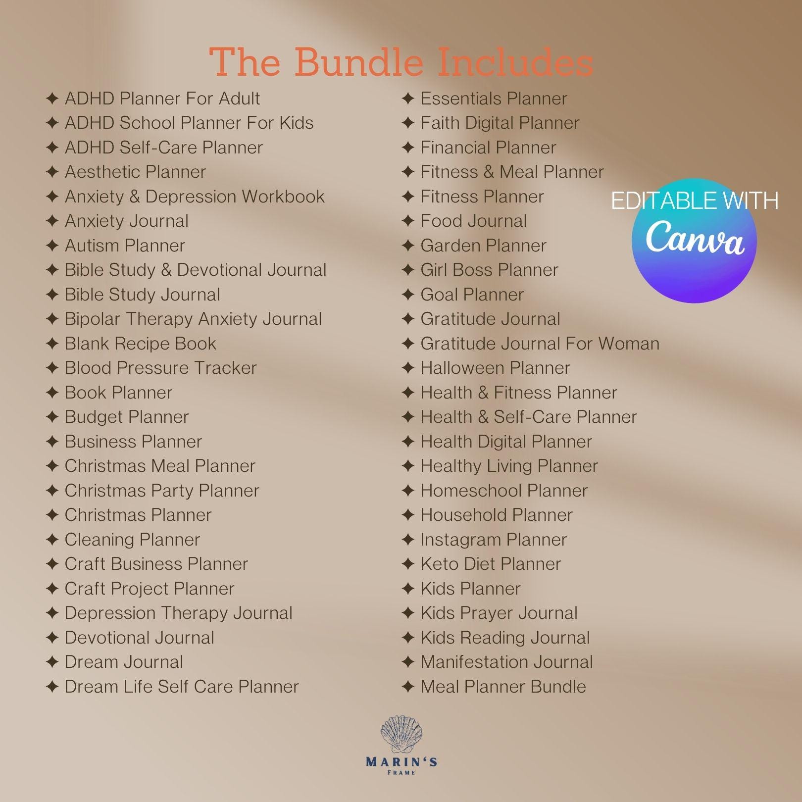 ADHD Planners (Adult, Kids, Self-Care) • Aesthetic & Faith Planners • Anxiety & Depression Workbooks • Bible Study & Devotional Journals • Budget, Business & Financial Planners • Fitness, Meal & Health Trackers • Gratitude & Manifestation Journals • Goal, Vision Board & Self-Love Planners • Student, Teacher & Office Planners • Wedding, Pregnancy & Travel Planners • Wellness, Skin Care & Mental Health Journals • Social Media, Podcast, YouTube, and Small Business Planners — and so much more!