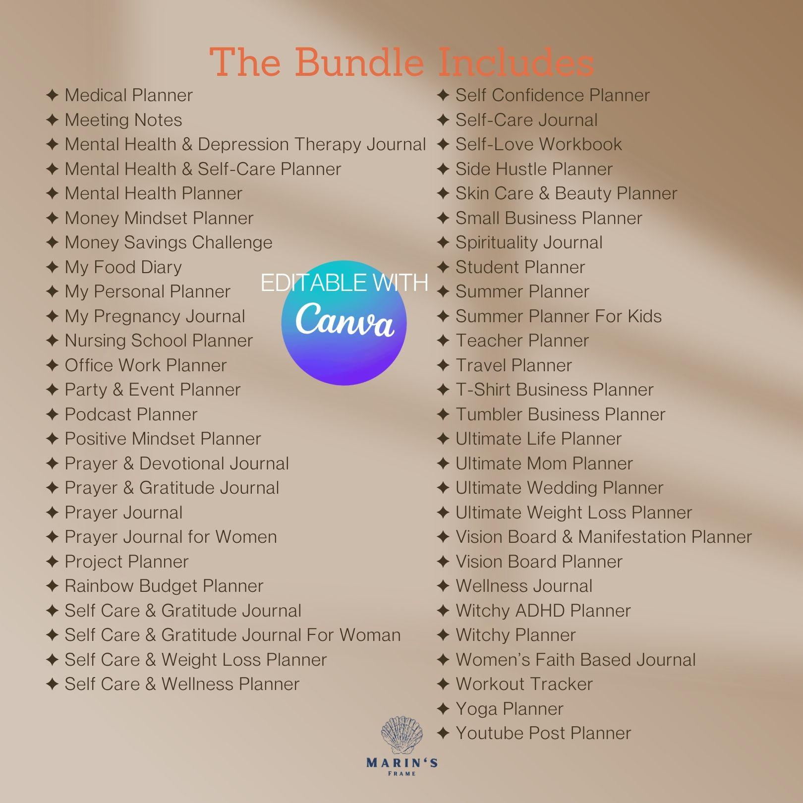100+ Editable Life Planner & Journal Templates Bundle: Best Selling Canva Templates | Business, Self Care, Budget, Fitness, Goal Planner Set