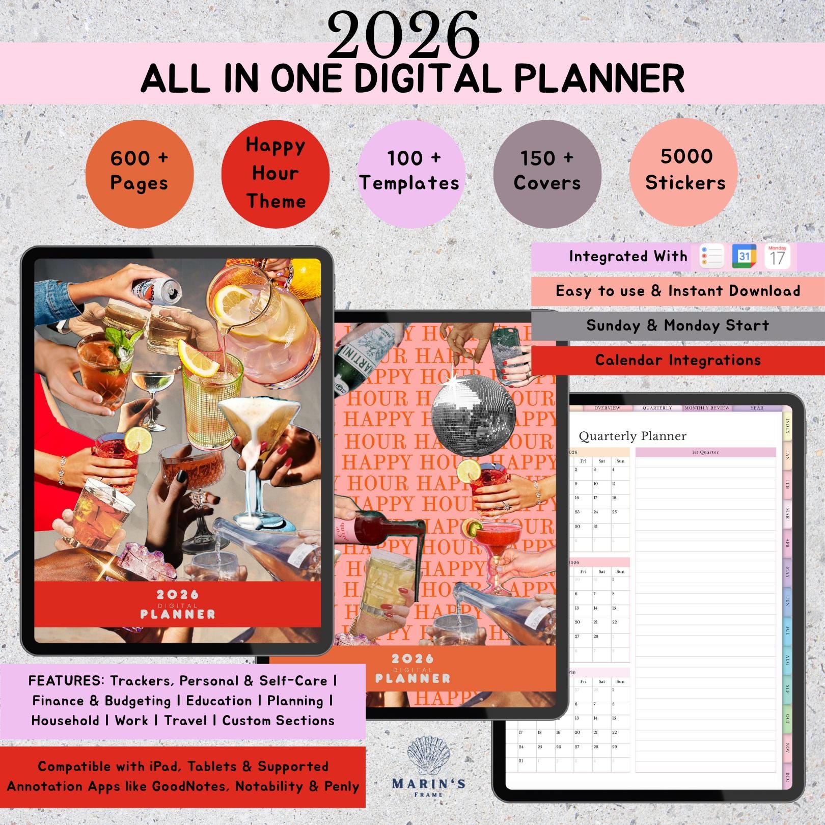 🖋️ All-in-One Digital Planner | Happy Hour Theme | 2026 Digital Journal & Goodnotes Template